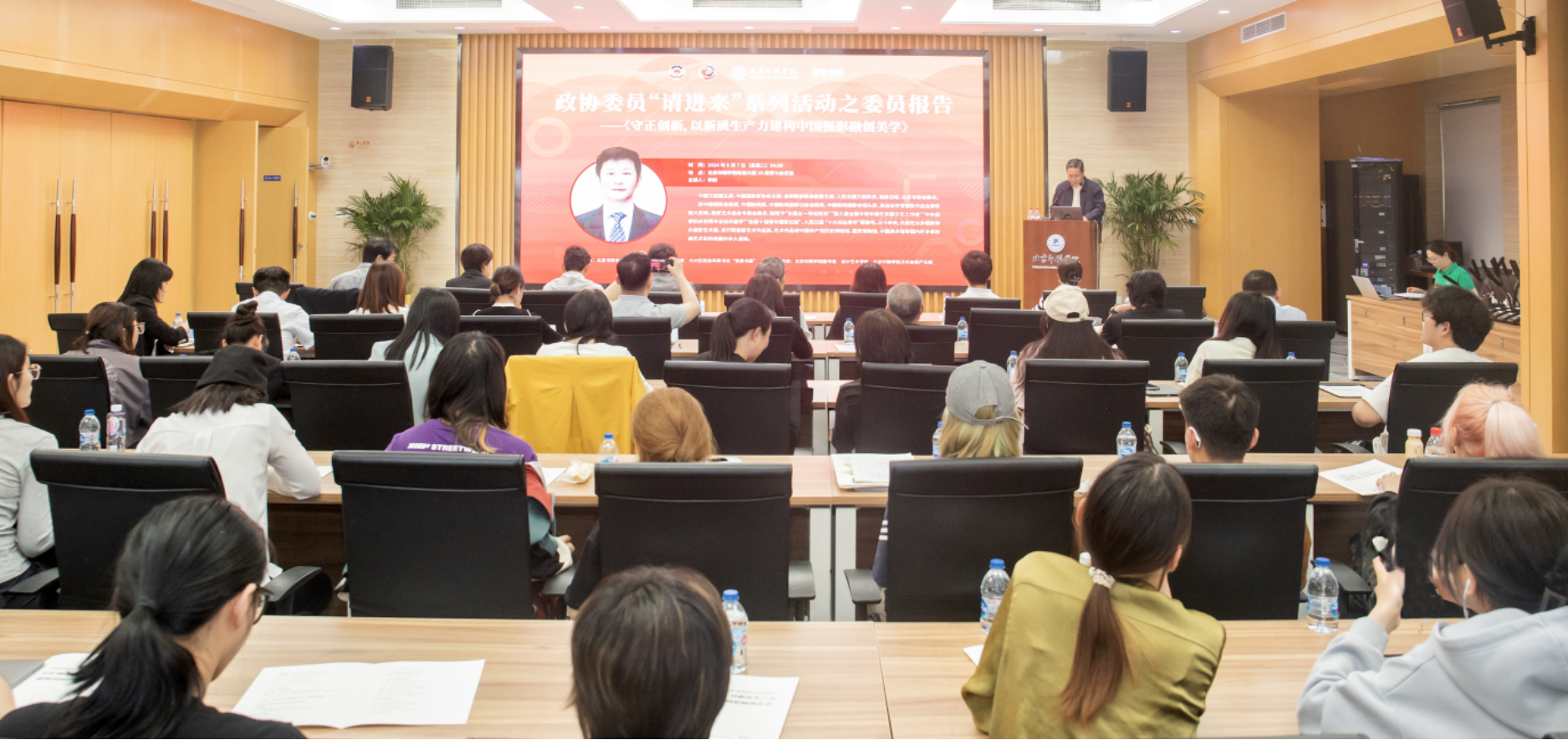 5月7日下午,在北京市政协学习委的指导下,北京市政协新闻出版界毕昇书坊委员工作室(简称:委员工作室)、大兴区政协毕昇书坊“悦读书屋”联合主办的政协委员“请进来”系列活动之委员报告在校举行。北京市政协学习委主任郭文莉,新闻出版界别委员、中共北京市委前线杂志社原总编辑李明圣,界面财联社副总裁李武,中国文联副主席、中国摄影家协会主席、金砖国家影像联盟主席李舸,大兴区政协机关党组成员、专委会工作一室主任马锦麟以及来自市区两级政协委员代表,学校党委常委、统战部部长杜艳平,学校相关职能部门及设艺学院师生代表参加活动。报告会由北京市政协委员、委员工作室负责人高锦宏主持。